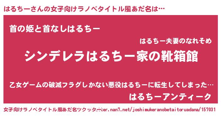 | 男性向けラノベタイトル風あだ名 | 『緋弾のハルチー』『魔弾の王とはるちー』 |