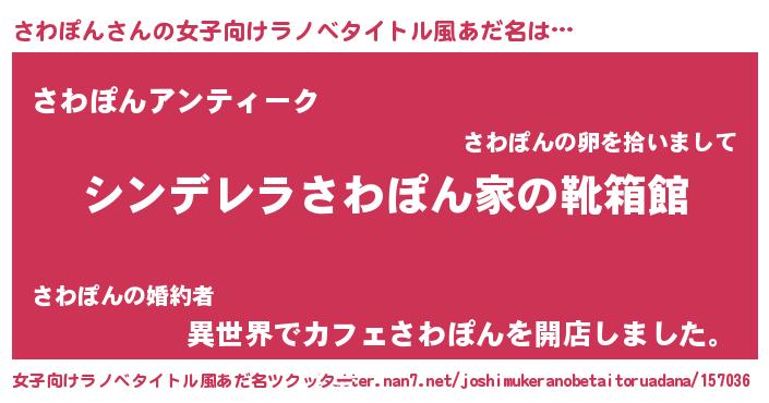 | ヒーロー風カッコイイあだ名 | 『サイバー戦士サワポン』『ネオサワポン』 |