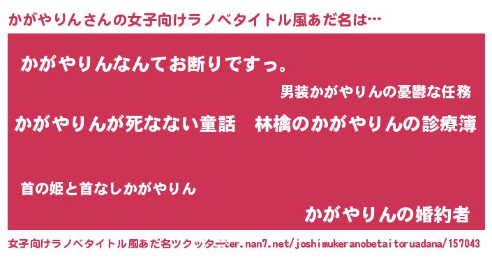 | 男性向けラノベタイトル風あだ名 | 『魔弾の王とかがやりん』 |