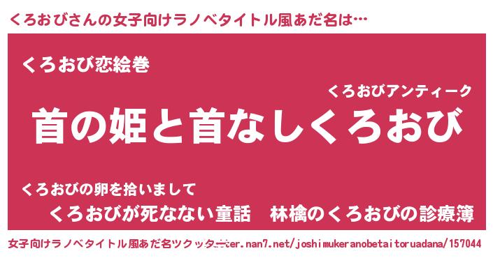 | 男性向けラノベタイトル風あだ名 | 『はたらくくろおびさま!』 |