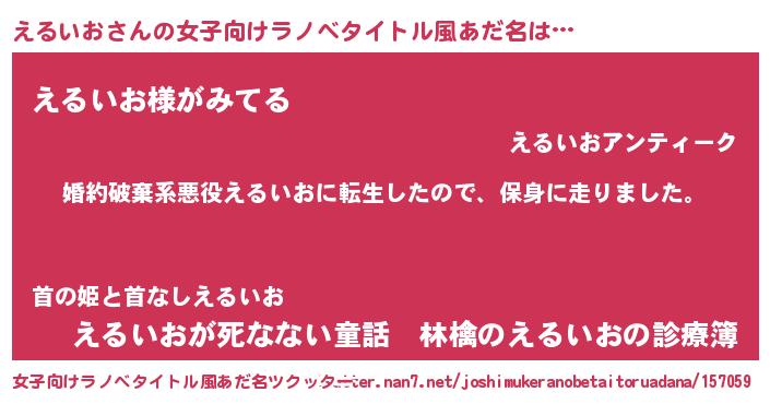 | 意味不明あだ名 | 『めかぶ科えるいお属』『自称えるいお』 |