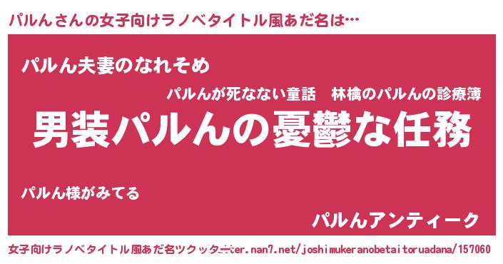 | 男性向けラノベタイトル風あだ名 | 『冴えないパルんの育てかた』 |