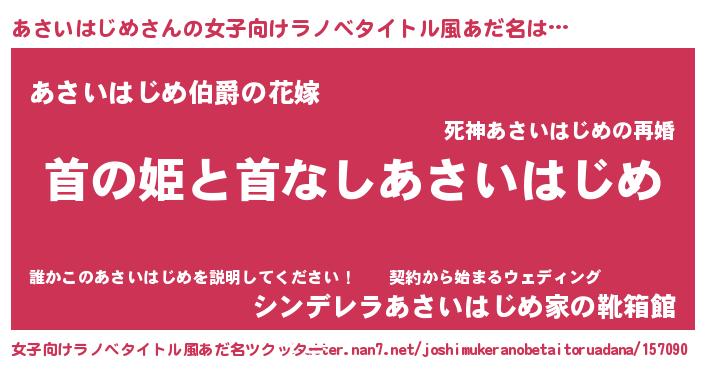 | 男性向けラノベタイトル風あだ名 | 『はたらくあさいはじめさま!』 |