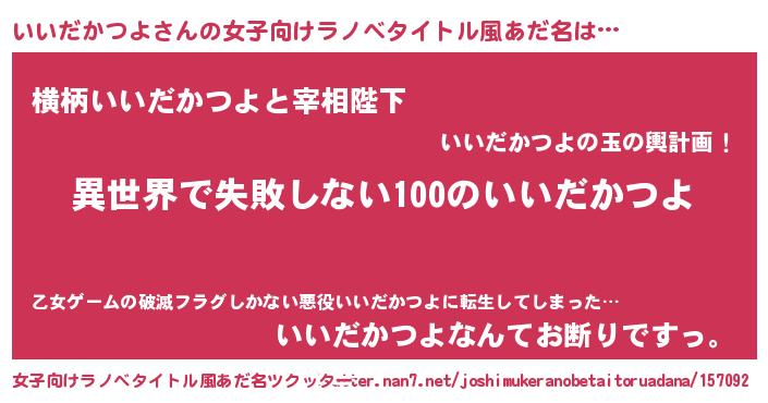 | 男性向けラノベタイトル風あだ名 | 『いいだかつよという概念が存在しない退屈な世界 』 |