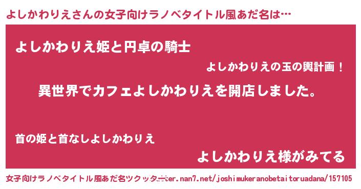 | 意味不明あだ名 | 『永久保存よしかわりえ』 |