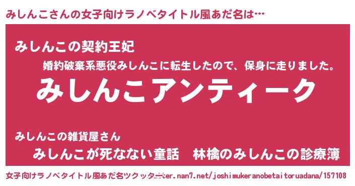 | 意味不明あだ名 | 『自称みしんこ』『永久保存みしんこ』 |