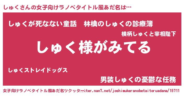 | 胡散臭い通販商品みたいなあだ名 | 『全米が絶賛したサプリメント…その名も「しゅく」』 |
