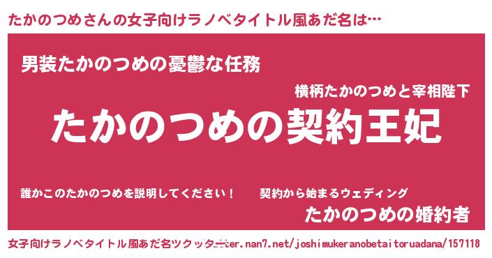 | 胡散臭い通販商品みたいなあだ名 | 『来世でも幸せになれる招き猫…その名も「たかのつめ」』 |