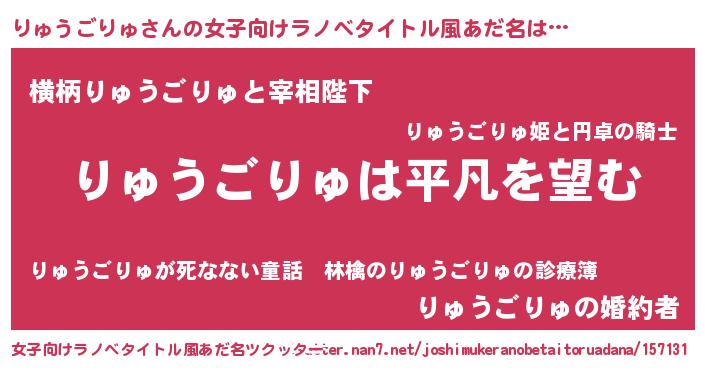| 男性向けラノベタイトル風あだ名 | 『ダンジョンにりゅうごりゅを求めるのは間違っているだろうか』 |