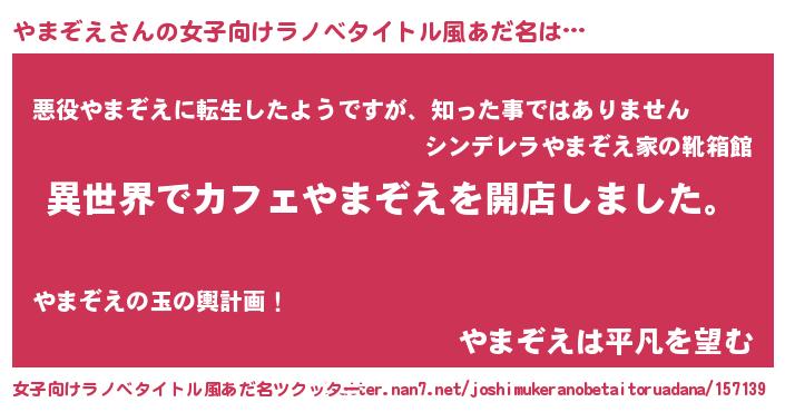 | 男性向けラノベタイトル風あだ名 | 『誰もが恐れるあのやまぞえが、ぼくの専属メイドになるようです。』 |