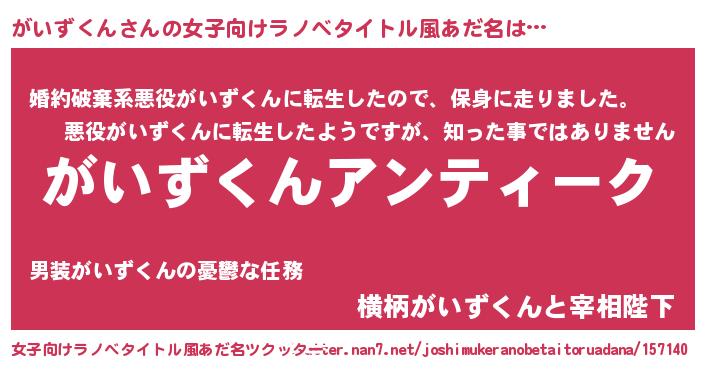 | 男性向けラノベタイトル風あだ名 | 『魔法科高校のがいずくん』 |