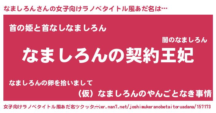 | 意味不明あだ名 | 『永久保存なましろん』『自称なましろん』 |
