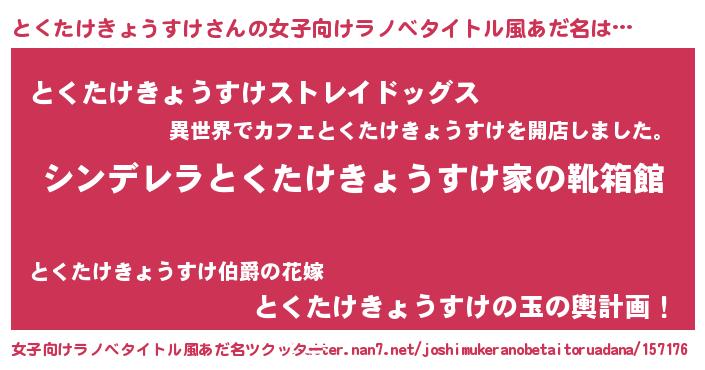 | 男性向けラノベタイトル風あだ名 | 『緋弾のトクタケキョウスケ』 |