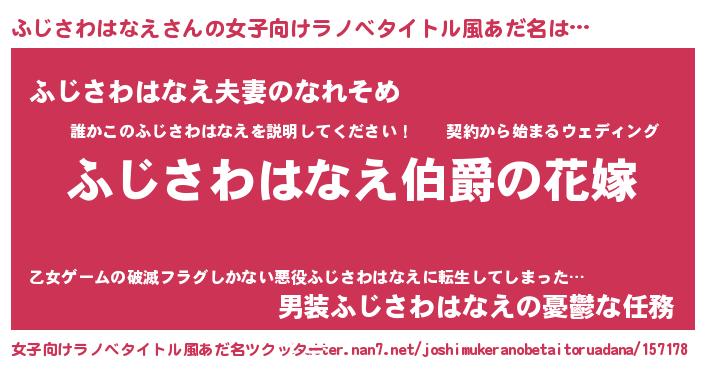 男性向けラノベタイトル風あだ名 | 『やはりふじさわはなえの青春ラブコメはまちがっている 』 |