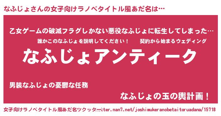 | 男性向けラノベタイトル風あだ名 | 『魔法科高校のなふじょ』 |