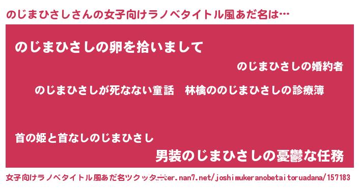| 男性向けラノベタイトル風あだ名 | 『魔弾の王とのじまひさし』 |
