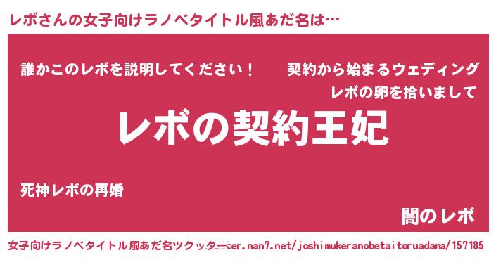 | 男性向けラノベタイトル風あだ名 | 『レボという概念が存在しない退屈な世界 』 |