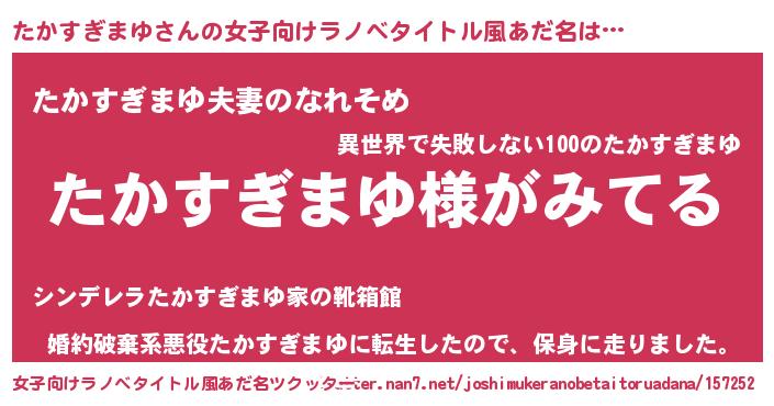 | 伝説のあだ名 | 『覚醒した遊び人たかすぎまゆ』 |