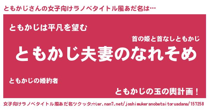 | 男性向けラノベタイトル風あだ名 | 『おまえをオタクにしてやるから、俺をともかじにしてくれ! 』 |