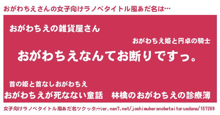| 意味不明あだ名 | 『自称おがわちえ』『ペロリンおがわちえ』 |
