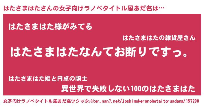 | 意味不明あだ名 | 『自称はたさまはた』 |