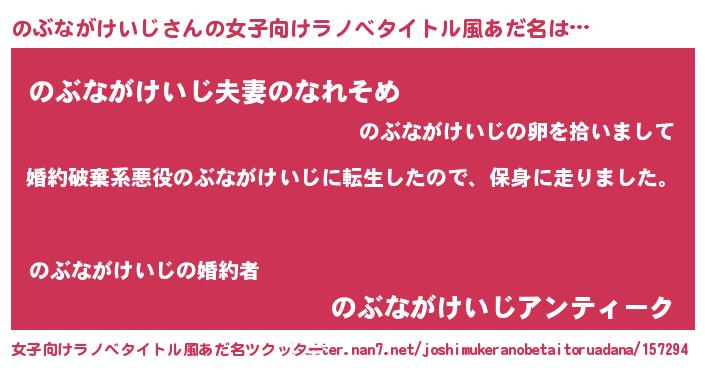 | 男性向けラノベタイトル風あだ名 | 『転生したらのぶながけいじだった件』 |