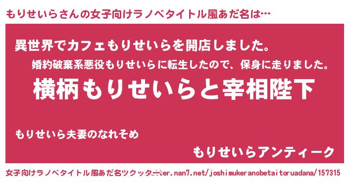 | 伝説のあだ名 | 『古文書に記された勇者もりせいら』 |