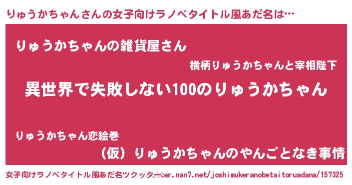 | 男性向けラノベタイトル風あだ名 | 『りゅうかちゃんという概念が存在しない退屈な世界 』 |