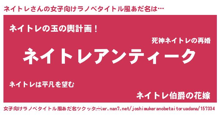 | 男性向けラノベタイトル風あだ名 | 『魔法科高校のネイトレ』 |