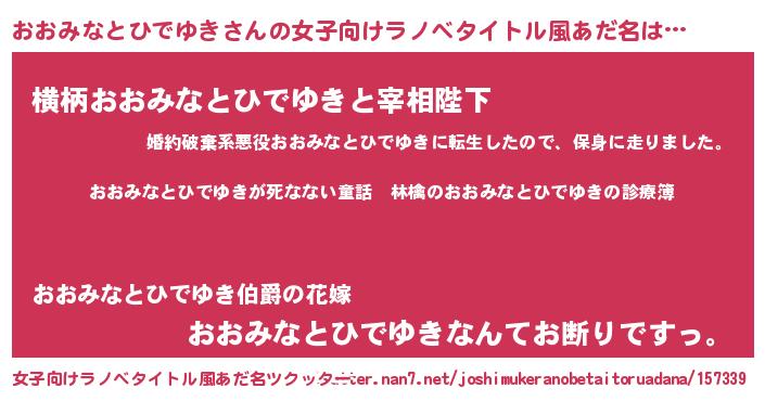 | 男性向けラノベタイトル風あだ名 | 『魔弾の王とおおみなとひでゆき』 |