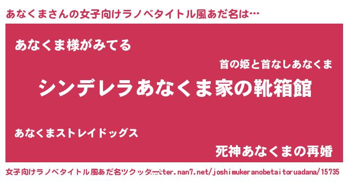 | 男性向けラノベタイトル風あだ名 | 『緋弾のアナクマ』 |