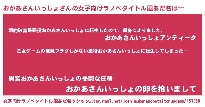 | 意味不明あだ名 | 『住所不定無職おかあさんいっしょ(39歳)』 |