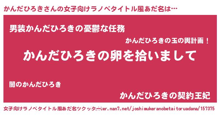 | 男性向けラノベタイトル風あだ名 | 『ダンジョンにかんだひろきを求めるのは間違っているだろうか』 |