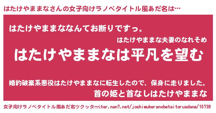 | 男性向けラノベタイトル風あだ名 | 『ダンジョンにはたけやままなを求めるのは間違っているだろうか』 |