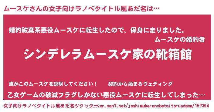 | 男性向けラノベタイトル風あだ名 | 『緋弾のムースケ』『魔弾の王とムースケ』 |