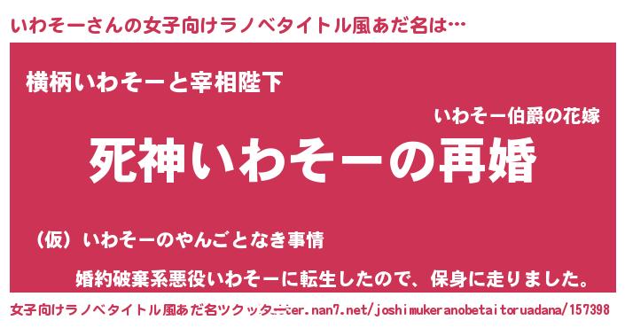 | 男性向けラノベタイトル風あだ名 | 『ノーゲーム・ノーイワソー』 |