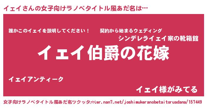| ファンタジー風あだ名 | 『エターナルイェイー』『イェフェル』 |