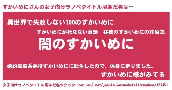| 意味不明あだ名 | 『自称すかいめに』『永久保存すかいめに』 |