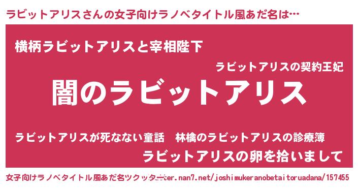 | 男性向けラノベタイトル風あだ名 | 『Re:ラビットアリスから始める異世界生活』 |