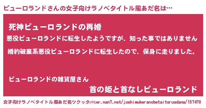 | 男性向けラノベタイトル風あだ名 | 『ピューロランドスレイヤー』 |