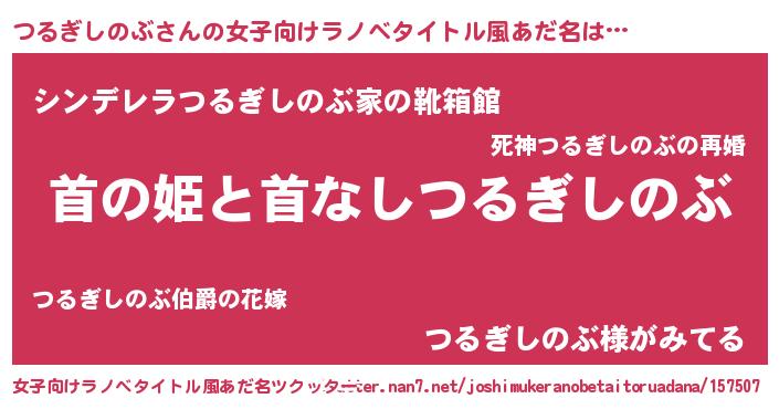 | 男性向けラノベタイトル風あだ名 | 『はたらくつるぎしのぶさま!』 |