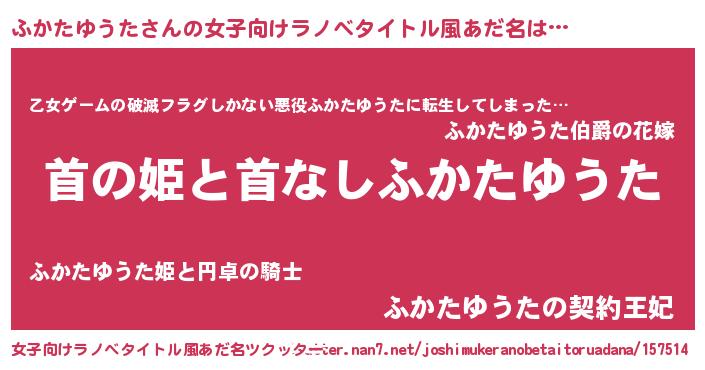 | 男性向けラノベタイトル風あだ名 | 『はたらくふかたゆうたさま!』 |