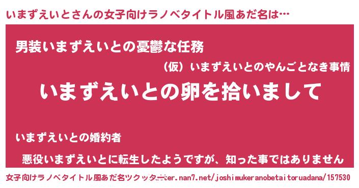 | 男性向けラノベタイトル風あだ名 | 『いまずえいとの嫁は女の子じゃないと思った?』 |