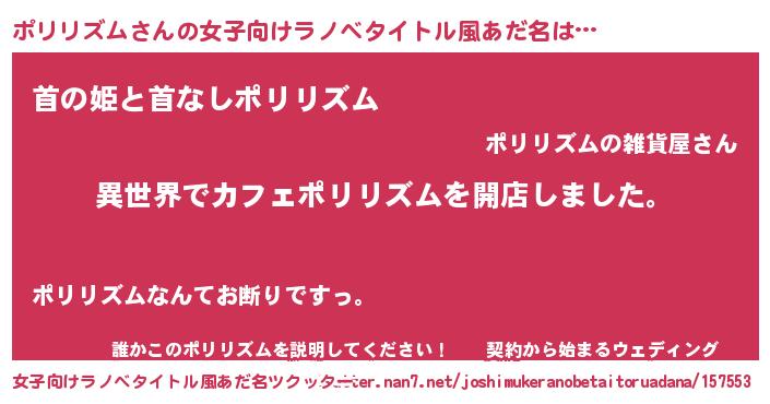 | 男性向けラノベタイトル風あだ名 | 『誰もが恐れるあのポリリズムが、ぼくの専属メイドになるようです。』 |
