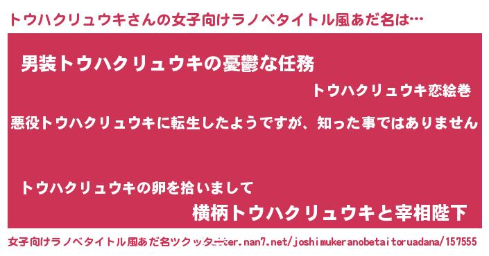 | 男性向けラノベタイトル風あだ名 | 『この素晴らしい世界にトウハクリュウキを!』 |