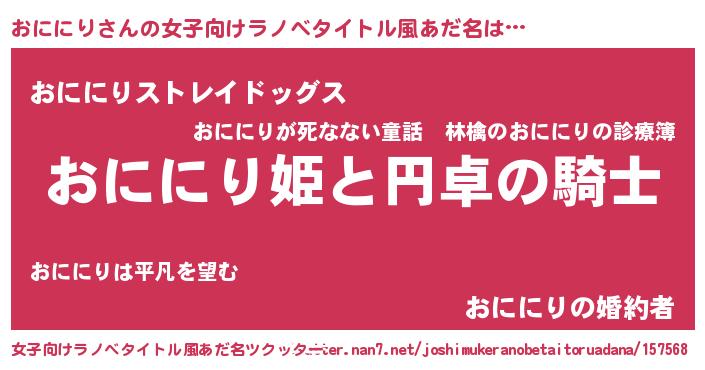 | 男性向けラノベタイトル風あだ名 | 『オニニリアートオンライン』 |
