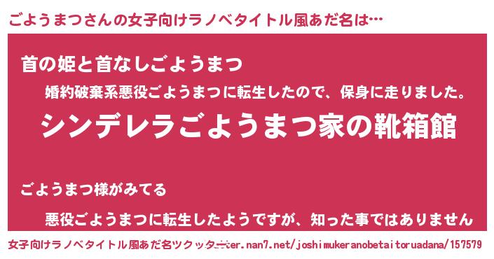 | 意味不明あだ名 | 『住所不定無職ごようまつ(53歳)』 |