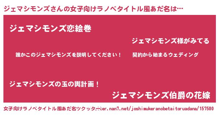| 男性向けラノベタイトル風あだ名 | 『ジェマシモンズアートオンライン』 |