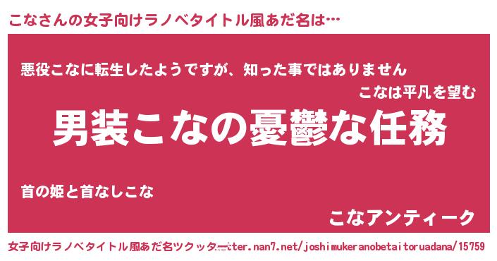 | 意味不明あだ名 | 『住所不定無職こな(6歳)』『自称こな』 |