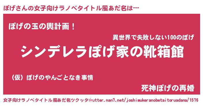 | 男性向けラノベタイトル風あだ名 | 『緋弾のポゲ』『ノーゲーム・ノーポゲ』 |